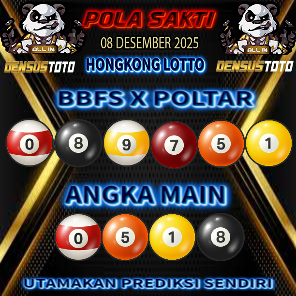 Prediksi DENSUSTOTO menyediakan Syair Togel Hongkong resmi yang dapat anda saksikan dalam situs judi togel online ini. Setiap pemain judi togel online yang tidak memandang dan mengenal syair togel hongkong pastilah kurang mujur buat mendapati angka keluaran togel terjitu. Lantaran itu sekarang situs judi togel online DENSUS TOTO sekarang akan memberikan anda bocoran bagaimana caranya mendapati nomor keluaran prediksi hongkong dari syair togel hk terjitu. Sekarang anda cuma perlu dan mengenal code syair hongkong ini merupakan prediksi hongkong yang dituang terdapat sifat code syair. Maka serius tidak bertanya-tanya jikalau sejumlah penggemar togel begitu menyintai prediksi syair togel ini. Buat prediksi syair hongkong dapat dipakai buat bahan ketidaksamaan mencari angka jitu yang bisa keluar pada hari ini. Karenanya berhati-hatilah selalu pada setiap terdapat dipicu di situ dapat anda angka bermain 2D, 3D dan 4D.
