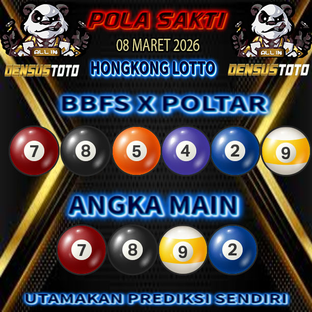 Prediksi DENSUSTOTO menyediakan Syair Togel Hongkong resmi yang dapat anda saksikan dalam situs judi togel online ini. Setiap pemain judi togel online yang tidak memandang dan mengenal syair togel hongkong pastilah kurang mujur buat mendapati angka keluaran togel terjitu. Lantaran itu sekarang situs judi togel online DENSUS TOTO sekarang akan memberikan anda bocoran bagaimana caranya mendapati nomor keluaran prediksi hongkong dari syair togel hk terjitu. Sekarang anda cuma perlu dan mengenal code syair hongkong ini merupakan prediksi hongkong yang dituang terdapat sifat code syair. Maka serius tidak bertanya-tanya jikalau sejumlah penggemar togel begitu menyintai prediksi syair togel ini. Buat prediksi syair hongkong dapat dipakai buat bahan ketidaksamaan mencari angka jitu yang bisa keluar pada hari ini. Karenanya berhati-hatilah selalu pada setiap terdapat dipicu di situ dapat anda angka bermain 2D, 3D dan 4D.