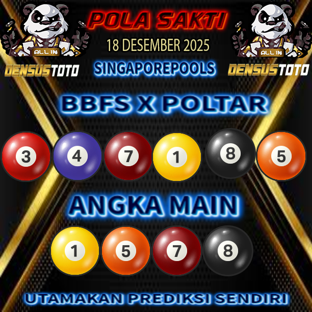 Prediksi DENSUSTOTO menyediakan Syair Togel Singapore resmi yang dapat anda saksikan dalam situs judi togel online ini. Setiap pemain judi togel online yang tidak memandang dan mengenal syair togel singapore pastilah kurang mujur buat mendapati angka keluaran togel terjitu. Lantaran itu sekarang situs judi togel online DENSUS TOTO sekarang akan memberikan anda bocoran bagaimana caranya mendapati nomor keluaran prediksi singapore dari syair togel sgp terjitu. Sekarang anda cuma perlu dan mengenal code syair singapore ini merupakan prediksi singapore yang dituang terdapat sifat code syair. Maka serius tidak bertanya-tanya jikalau sejumlah penggemar togel begitu menyintai prediksi syair togel ini. Buat prediksi syair singapore dapat dipakai buat bahan ketidaksamaan mencari angka jitu yang bisa keluar pada hari ini. Karenanya berhati-hatilah selalu pada setiap terdapat dipicu di situ dapat anda angka bermain 2D, 3D dan 4D